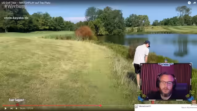 05:25:29Der Streamer lädt zu einem interaktiven Golf-Simulator-Event ein, bei dem Zuschauer Golfplätze weltweit auswählen und wetten können, wie viele Schläge er pro Loch benötigt. Es wird eine Scorecard erklärt, die zeigt, wie viele Schläge ein Profi üblicherweise braucht, und dass mit seinem Handicap von 54 drei Zusatzschläge pro Loch erlaubt sind. Der Gewinner erhält Preise. Zudem wird ein Sky Sport Jahresabo verlost, um die Anteilnahme am Ryder Cup zu fördern, der in Amerika stattfindet.