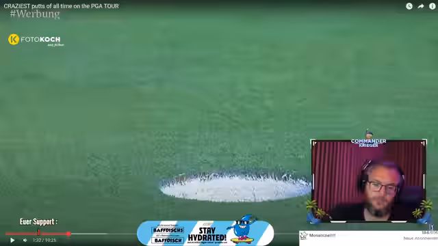 01:23:48Es wird über Paxi gesprochen, der gerne Leute in Streams triggert. Weiterhin wird die Verantwortung beim Golfspiel und die Besprechung von Torwart, Verteidigung, Ballberührung und Impact thematisiert. Es wird erwähnt, dass Max an der European Tour teilnimmt, genauer gesagt an den Open the Portugal at Royal. Er liegt momentan auf Platz 95 von 144. Die besten 60 kommen weiter, was bedeutet, dass er noch eine Chance hat, sich zu verbessern. Es wird erwähnt, dass Max um 12:40 Uhr spielt, was wahrscheinlich 13:40 Uhr deutscher Zeit entspricht. Es wird kurz auf andere Spieler eingegangen, wie Benjamin Rush, der eine bessere Leistung gezeigt hat. Abschließend wird erwähnt, dass Max am Wochenende um Geld spielt, falls er unter die besten 60 kommt.