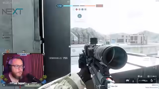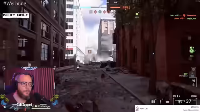 03:49:22Nach dem Golf-Teil wechselt der Stream zum Spiel Battlefield. Streamer und seine Mitspielen kämpfen gegen gegnerische Squads, strategisieren Angriffe auf Kontrollpunkte und verteidigen Positionen. Der Fokus liegt auf Teamplay, taktischem Vorgehen und der Wiederbelebung von Teammitgliedern. Parallel dazu findet eine intensive Interaktion mit dem Chat statt. Zuschauer werden begrüßt, Spenden werden erwähnt und aktuelle Themen wie die Leistung von Fußballmannschaften diskutiert.