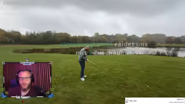 02:09:57Der Stream beginnt mit dem ersten Abschnitt eines Golfturniers. Alle Teilnehmer treten an und spielen ihre ersten Tee Shots vor Justin. Der Kommentator beobachtet die Schläge genau und analysiert die Technik. Er bemerkt, dass einige Spieler nicht wie Profis aussehen, kritisiert aber auch, dass man nicht zwingend Golf-Kenntnisse haben muss, um ein Turnier zu veranstalten. Es folgen die Vorstellung der Golfer, Fragen zu deren Erfahrung und der allgemeine Aufbau des Turniers.