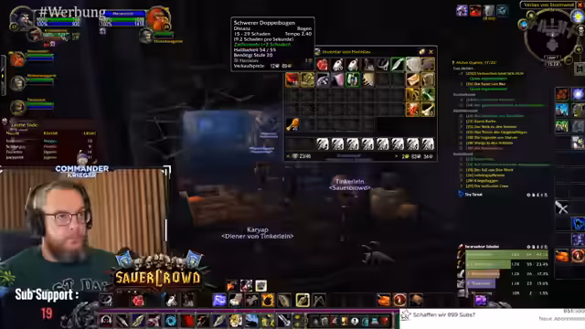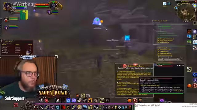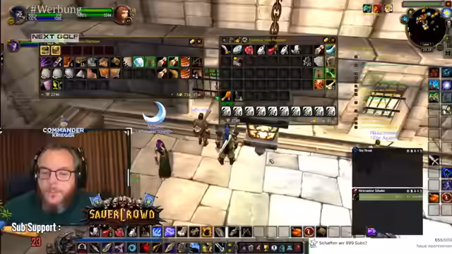 04:35:42Der Streamer plant zusätzliche Dungeon-Runs mit Gruppen, darunter Deadmines und Burgschattenfang, basierend auf vorherigen Erfahrungen mit Spielern wie Mori und Keklark. Es gibt Diskussionen über Gilde-Management, wie das Trennen von Gilden- und Flüster-Chat für bessere Übersicht. Quest-Strategien werden verfeinert, etwa das sichere Erledigen von Quest-Mobs wie Insurgenten, und es werden städtische Sicherheitsinformationen geteilt. Die Gruppe koordiniert sich für den nächsten Dungeon und bereitet sich auf Level-Progress vor.