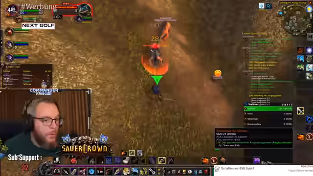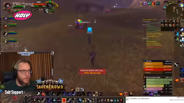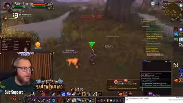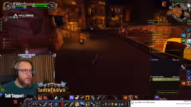 06:31:03Im Stream wird eine koordinierte Jagd auf Elite-Gegner in einem Zwergenlager durchgeführt. Es geht darum, bestimmte Gegnertypen wie Dunkeleisen-Zwerge und Tunnelgräber zu eliminieren, um eine Quest abzuschließen. Der Streamer betont die Wichtigkeit von Teamwork und erklärt taktische Feinheiten, wie die Nutzung von Haustieren, Fallen und das Verteilen des Schadens. Er weist darauf hin, dass Saboteure kurz vor ihrem Tod explodieren können und warnt vor ihrem Selbstzerstörungs-Schaden. Die Gruppe kämpft sich langsam durch das Camp, während der Streamer kontinuierlich das Zielverhalten der Gegner und die Taktik der Gruppe kommentiert.
