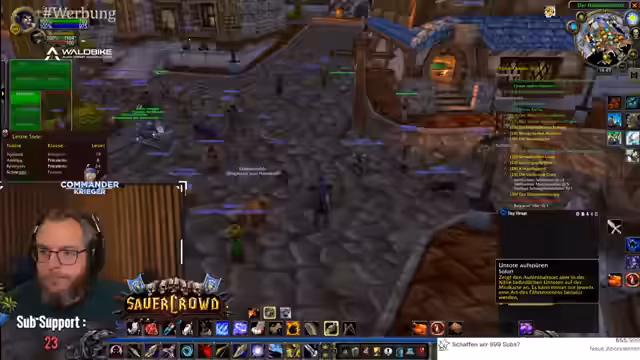 08:14:50Die Gilden Sauerkraut Community Gilde 3 und 5 wurden als große, aktive Gemeinschaften mit bis zu 800 Spielern pro Gilde präsentiert. Besonders erwähnenswert ist die Integration von Add-ons für internen Austausch und Fusionen, was die Organisation erleichtert. Der Streamer betonte den Wert dieser Gilden für zukünftige Gruppenquests und Kooperationen im Spiel.