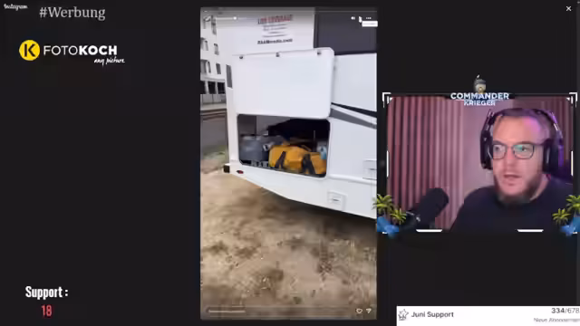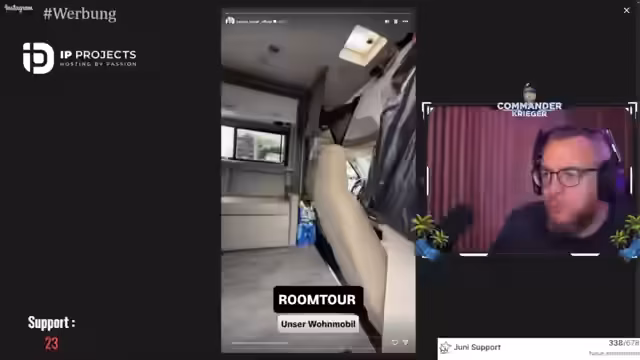 01:16:28Ein Rundgang durch eines der Wohnmobile zeigt die beengten Verhältnisse. Der Streamer teilt sich sein Abteil mit Martin. Es gibt zwar Küche und sogar eine Dusche, aber der Platz ist sehr limitiert, insbesondere da alle vier Influencer ihre eigene Kameratechnik mitbringen müssen. Der Alltag wird als reiner Überlebenskampf dargestellt, bei dem jeder Zentimeter Platz zählt und die Organisation im Vordergrund steht.