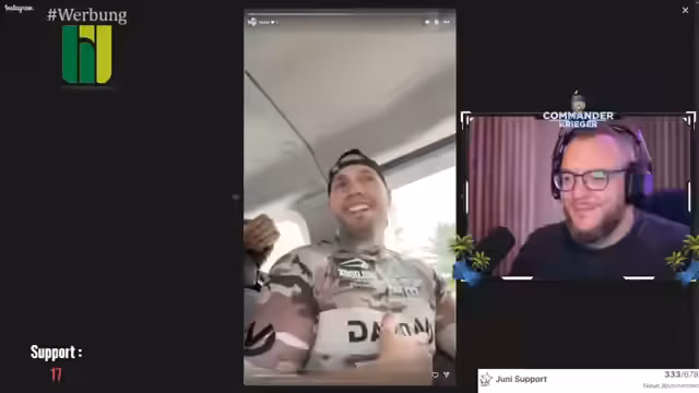 06:07:48Ein kurzes, spontanes Interview mit einem Follower, Nyfo Vegas, findet statt. Nach einem Gewinnspiel erzählt der 36-jährige von seinem Hobby, einem Schrebergarten, den er mit seiner Mutter saniert hat. Das Gespräch beleuchtet sein Alltagsleben, das hauptsächlich aus einem Bürojob und der Gartenarbeit besteht, und zeigt persönliche Einblicke, die den Stream von der RAAM-Berichterstattung abweichen.