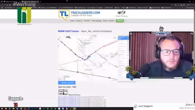 04:43:24Der Stream konzentriert sich auf den Verlauf des Race Across America (RAAM). In der Mittagshitze bei bis zu 46 Grad Celsius Lufttemperatur kämpft das Team No Limits. Die Strecke ist extrem lang und eintönig, was die Herausforderung unterstreicht. Der Fokus liegt auf den Radfahrern wie Sascha Huber, die beeindruckende Leistungen erbringen, während das Support-Team, die Warnathleten, für den reibungslosen Ablauf sorgt. Die Kommentatoren bewundern die Durchhaltepower der Athleten unter diesen widrigen Bedingungen.