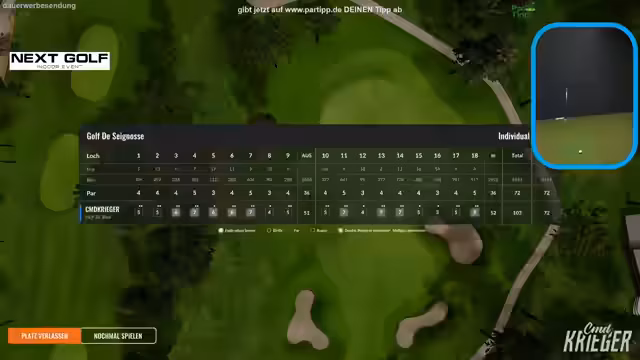 00:46:15Der Streamer präsentiert den ersten Golfplatz, Le Golf National, und erklärt die Scorekarte sowie das Handicap-System für die Zuschauer. Er gibt einen Hinweis, dass sein aktuelles Handicap 26,3 beträgt und wie dies die Anzahl der benötigten Schläge pro Bahn beeinflusst. Die Zuschauer haben noch Zeit, ihre Tipps bei Parttipp abzugeben, bevor die Runde startet. Nach dem Start der Runde hat der Streamer erneut Probleme mit der Anmeldung und der Analyse seiner Schläge, was ihn frustriert. Die erste Bahn erweist sich als sehr schwierig, mit einem Ball im Wasser und insgesamt neun Schlägen, was zu einem hohen Score führt. Er kämpft weiterhin mit der Präzision seiner Schläge und dem Gelände des Golfplatzes, der viele Wasserhindernisse aufweist. Trotz der Rückschläge versucht er, positiv zu bleiben und sich auf den Wettkampf zu konzentrieren.