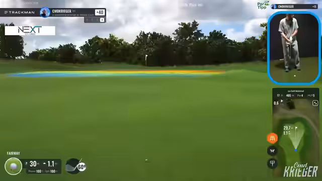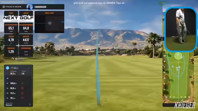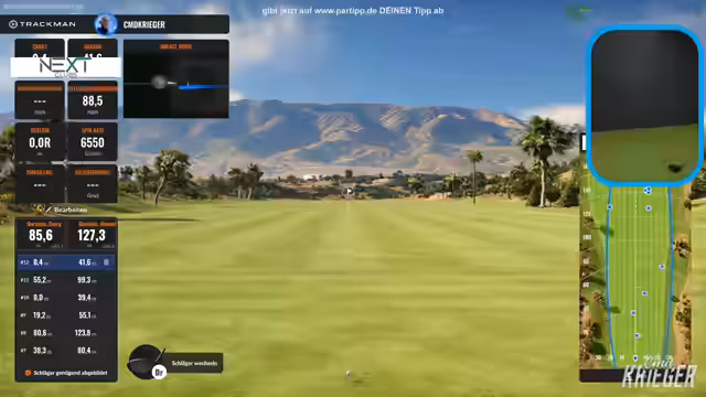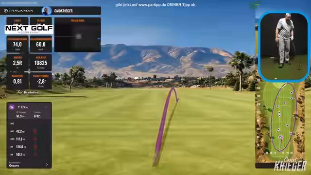 00:15:48Nachdem die technischen Probleme mit dem Mikrofon behoben sind, beginnt der Streamer mit einem Training auf der Driving Range. Er startet mit einem Pitching Wedge und zieht einen Handschuh an. Er stellt fest, dass er für sein 56er Wedge keine Schlaglänge hat. Während des Trainings analysiert er seine Schläge mithilfe des TrackMan-Simulators, der detaillierte Informationen wie den Treffpunkt am Schlägerblatt und den Smash-Faktor liefert. Er bemerkt, dass er die Bälle oft zu weit innen oder an der Spitze trifft, was die Reichweite beeinflusst. Er wechselt zu einem 7er Eisen und versucht, seinen Schwung zu verbessern, indem er auf Ratschläge aus dem Chat eingeht, wie zum Beispiel den linken Arm gestreckter zu lassen. Die Suche nach dem richtigen Rhythmus und einer konstanten Schlagtechnik erweist sich als schwierig, da die Schläge inkonsistent sind.