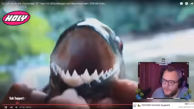 00:37:57Der Streamer zeigt weitere Szenen der Expedition und verdeutlicht die fortwährenden Gefahren im Regenwald. Das Team ist bereits am Anfang der Reise mit ernsten Konfrontationen konfrontiert, darunter das Kentern des Bootes mit Verlust wichtiger Ausrüstung und eines lebenswichtigen Wasserfilters. Es gibt Begegnungen mit hochgiftigen Tieren wie der Buschmeisterschlange, und das Camp wird von aggressiven roten Ameisen überfallen. Die Expedition leidet unter extrem langsamer Fortbewegung, körperlicher Erschöpfung und dem Verlust eines wichtigen Teammitglieds aufgrund einer Verletzung, was die weitere Planung erschwert.