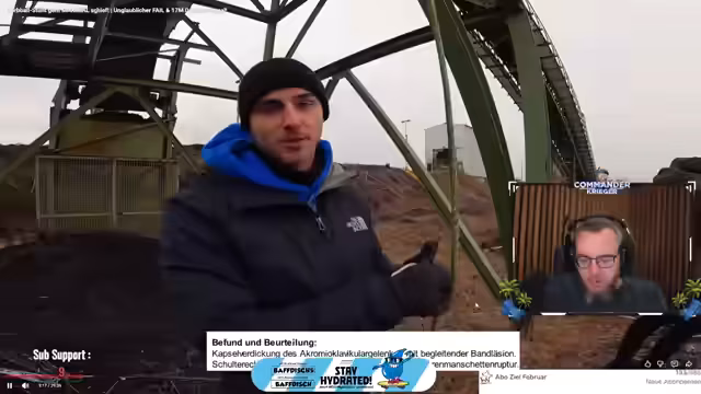 00:02:50Unter der Mithilfe von ostdeutschen 'Profikletterern' wird die Plattform für den Wreckling-Ball-Sprung errichtet. Der Streamer erwähnt, dass die Plattform radargesteuert wird, um die Geschwindigkeit zu messen. Es kommt zu kleineren Pannen und Diskussionen über die Ausführung. Die Betreiber der Plattform, Philipp und Richard, bereiten den Sprung vor, während der Streamer seine Bedenken bezüglich der Sicherheit und der Größe des Balls äußert. Die Aufhängung des Balls wird als kritischer Punkt identifiziert.
