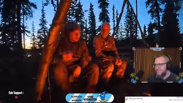01:16:11Während des gemeinsamen Essens führt der Streamer ein Gespräch mit Michael, dem kanadischen Outfitter. Michael erzählt von seiner Auswanderung nach Kanada im Jahr 1987 und den anfänglichen Herausforderungen, darunter eine schwere Kenterung eines Bootes, bei der er und seine Frau ihr gesamtes Equipment verloren und nur knapp mit dem Leben davongekommen sind. Trotzdem bereuen sie die Entscheidung nie und fühlen sich in ihrer neuen Heimat wohl. Michael schildert die immense Größe seines Jagdgebiets und die Lebensumstände.