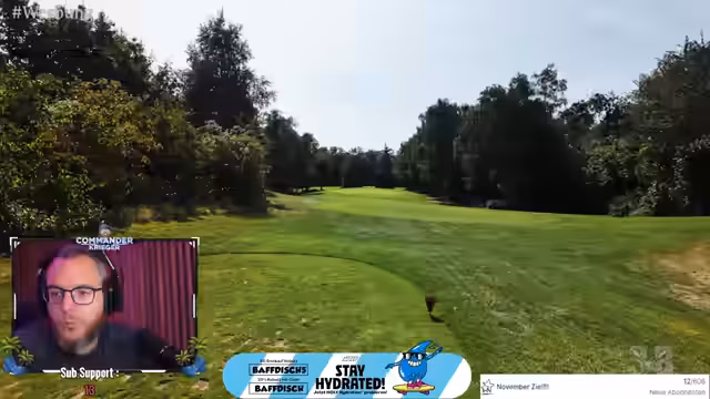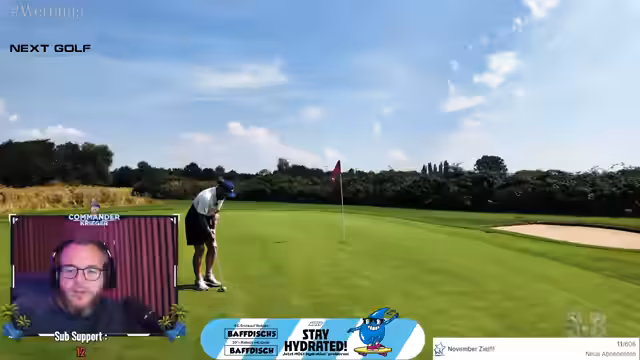 02:20:29Der Streamer startet eine Golf-Challenge auf dem Kurzplatz des Pottgolf Oberhausen. Er möchte versuchen, nur mit einem Pitching Wedge (P) und einem Putter den besten Score zu erzielen. Das erste Loch, ein Par 4 über 273 Meter, ist kürzer gesteckt als üblich. Er versucht, den Ball flach und lang zu schlagen, was ihm gut gelingt, und der Ball landet im Fairway. Der zweite Schlag ist ebenfalls sehr gut und landet auf dem Grün, was eine Birdie-Chance ermöglicht. Er ist überrascht, wie gut er mit dem P spielt. Das zweite Loch ist ein Par 3 über nur 59 Meter, das kürzeste Loch Deutschlands. Er versucht, den Ball locker anzuspielen, damit er rollt, und landet auf dem Grün. Nach vier Löchern steht er bei +1, was für ihn ein sehr gutes Ergebnis ist, besonders da er nur zwei Schläger verwendet.