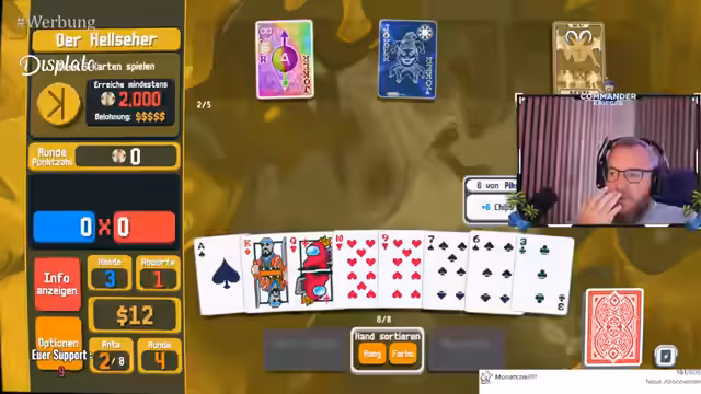 01:44:37Das aktuelle Spiel wird als Poker-basiert erklärt, bei dem das Ziel ist, eine bestimmte Punktzahl zu erreichen, um Level aufzusteigen und Small Blind und Big Blind zu besiegen. Mit der gewonnenen Kohle können Joker gekauft werden, die im Spiel helfen. Der Streamer erklärt die Punktetabelle und die Multiplikatoren für verschiedene Pokerhände. Er demonstriert, wie er versucht, mit verschiedenen Kartenkombinationen Punkte zu erzielen, und scheitert zunächst. Es wird erwähnt, dass das Spiel etwa 20 Euro kostet und sehr komplex ist mit vielen Multiplikatoren und 150 verschiedenen Jokern. Der Streamer probiert eine spezielle Aufgabe im Spiel aus, bei der er einen Roll-Flush abwerfen muss, und schaltet dabei einen neuen Joker frei. Er kündigt an, sich jetzt langsam anzuziehen, da er gleich auf den Golfplatz fahren wird. Abschließend verabschiedet er sich kurz, um sich umzuziehen, und verspricht, die Zuschauer mit auf den Golfplatz zu nehmen.