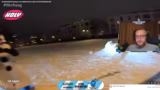 00:13:35Im Fokus des weiteren Streams stehen nun wieder deutlich gefährlichere Aktionen. Gemeinsam mit einem Begleiter werden Sprünge von einem hohen Balkon auf einen großen Schneemann geplant und ausgeführt. Der Streamer äußert dabei große Bedenken bezüglich seiner Fußverletzung, während sein Begleiter die Ängste des Streamers teilt und ihm zum Sprung verhilft. Die Landung des Begleiters wird als 'geil' und 'sauber' bewertet.