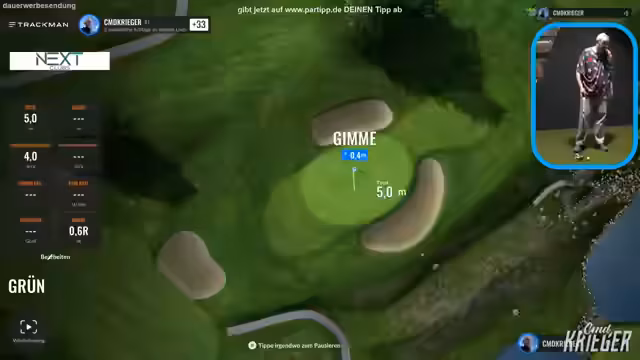 02:44:22Der Streamer spielt live auf dem Golfplatz Bonn Godesberg und kommentiert seine Schläge und Ergebnisse live. Er gerät bei einem Loch in eine schwierige Situation und diskutiert mit dem Chat über den korrekten Umgang mit Wasserhindernissen. Er zeigt Frustration über sein Spiel, aber auch Freude über gelungene Schläge und Birdies. Der Chat interaktiv stark, gibt Tipps und feiert Erfolge mit dem Streamer. Er erwähnt auch technische Probleme mit dem Livescore-System, die aber bekannt sind.