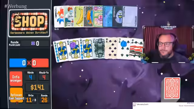 05:39:47Ein zentraler Teil des Streams ist die ausführliche Erklärung des Kartenspiels 'Magic Britto'. Der Streamer beschreibt die Spielmechanik detailliert: Man nutzt Joker- und Pokerkarten mit Multiplikatoren, die durch sogenannte Planetenkarten verbessert werden. Tarotkarten dienen als Boost, der zusätzliche Chips bringt. Das Ziel ist es, in jeder Runde Pokerhände zu bilden, deren Punktwert durch die Multiplikatoren vervielfacht wird. Das Ziel ist es, eine festgelegte Punktzahl wie 460.000 zu erreichen. Das Spiel wird als süchtig machend und strategisch anspruchsvoll beschrieben, bei dem es sowohl auf Glück als auch auf taktisches Wissen ankommt.