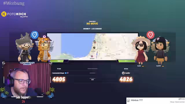 06:16:15Der Stream plötzlich vom Farm-Thema wechselt und zur Teilnahme an einem Geogäser-Turnier übergeht. Die Saison endet in 33 Minuten, was zu Zeitdruck führt. Als Ziel für das Turnier werden 9 Siege oder 90 Punkte angestrebt. Während des Turniers werden Erinnerungen an andere Projekte wie Minecraft-Filme und vorherige Geogäser-Tourniere ausgetauscht. Die Chat-Interaktion bleibt hoch, und der Streamer gibt Tipps zu Energy-Getränken.