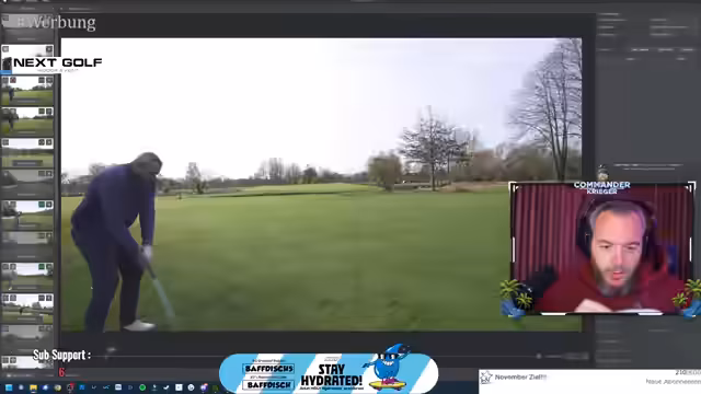 08:34:14In Kooperation mit All4Golf wurde eine Challenge veranstaltet, bei der eine Person die Chance erhielt, in einem Matchplay gegen den Streamer anzutreten und einen Cobra Aerojet zu gewinnen. Der ausgewählte Teilnehmer, Marvin, spielt seit dem 1. Juni dieses Jahres mit einem Handicap von 54. Um das Matchplay fairer zu gestalten, erhielt Marvin auf jedem der drei gespielten Löcher (Loch 7, 8, 9) zwei Schläge Vorsprung. Dies bedeutet, dass er mit sechs Schlägen ein Par des Streamers (vier Schläge) ausgleichen oder mit fünf Schlägen sogar gewinnen konnte. Die Challenge begann mit einem Par 4 über 300 Meter, wobei der erste Ball geradeaus und der zweite leicht links am Bunker vorbei gespielt werden sollte. Der Streamer zeigte sich beeindruckt von Marvins Schlägen und äußerte Bedenken, dass das Match schwieriger werden könnte als erwartet. Trotz seiner heiseren Stimme war der Streamer motiviert, die Challenge spannend zu gestalten und den Schläger in gute Hände zu geben.