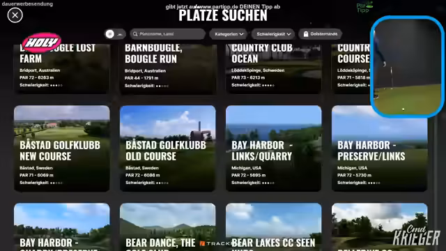 00:16:37Der Streamer stellt Partip vor, eine von ihm ins Leben gerufene Webseite, auf der Zuschauer tippen können, wie viele Schläge er benötigt, um den Ball einzulochen. Er erklärt die Regeln anhand eines Beispiels: Bei einem Par 4 Loch mit 197 Metern bis zur Fahne, sollte ein Profi vier Schläge benötigen. Mit seinem Handicap hat er zwei zusätzliche Schläge, also sechs Schläge. Die Zuschauer können im Chat ihre Tipps abgeben. Wer exakt tippt, erhält drei Punkte; wer einen Schlag daneben liegt (z.B. sechs oder acht Schläge bei einem Tipp von sieben), erhält einen Punkt. Die Anmeldung bei Partip ist kostenlos über einen Twitch-Account möglich. Es gibt verschiedene Preise zu gewinnen, je nachdem, ob man Golfer, Golf-interessiert oder nicht interessiert ist, darunter Golfausrüstung, Schnupperkurse oder Holy-Pakete. Die Punkte werden wöchentlich addiert, und es gibt Monats- und Saisongewinner mit attraktiven Preisen wie Platzreifekursen oder Holy Advance Kalender Sets.