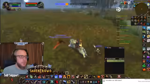 00:31:45Ein Zuschauer fragt den Streamer, warum er nicht Priester spielt, da die Klasse Helfen kann. Der Streamer erwidert, dass er als Heiler die volle Verantwortung für die Gruppe tragen müsste und das nicht zu seinem Spielstil passt. Er beschreibt die Rolle eines Heilers als eine mit hoher Verantwortung und nicht als eine Klasse, die einfach nur heilt, was er ablehnt.
