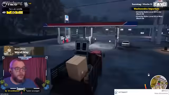 02:05:35Eine Wette wurde ins Leben gerufen, die vorsieht, dass der Streamer 1000 Kilometer fahren soll, um eine Currywurst in Rosins Restaurant bei Heike zu essen. Steve möchte, dass der Streamer diese Herausforderung antritt und bietet eine Bezahlung an. Der Streamer überlegt, wie viel er dafür verlangen würde, und kalkuliert Tankkosten und Übernachtungsgebühren. Die Qualität der Currywurst wird hinterfragt und das Risiko einer schlechten Erfahrung wird bedacht.