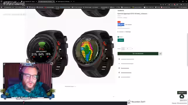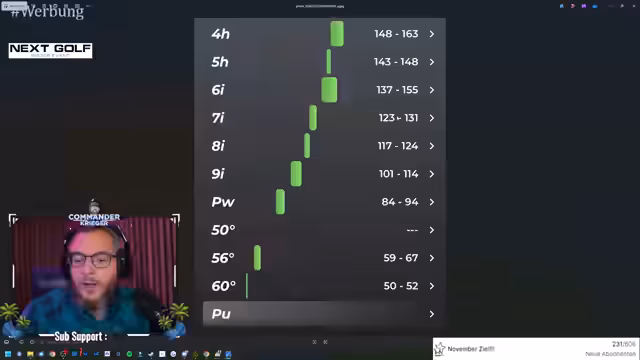 01:04:19Es wird eine Diskussion über die Regelkonformität von Klebefolien auf Golfschlägern geführt, insbesondere im Hinblick auf Turniere. Der Streamer überlegt, eine Folie von Sunsoft Battery auf seinen Driver aufzubringen, um den Lack zu schützen, ist sich aber unsicher, ob dies bei Turnieren erlaubt ist. Max bestätigt, dass eine Folie auf dem Schlägerkopf illegal wäre, während eine Folie am Schaft oder Griff erlaubt ist. Zudem werden ACOS-Sensoren für Golfschläger vorgestellt, die eine jährliche Abo-Gebühr von 200 Euro kosten, aber auch die Garmin CT10-Sensoren als Alternative genannt. Für Garmin-Produkte wird ein Rabattcode (KRIGER10) bei NextClubs erwähnt und die Möglichkeit, dort gebrauchte Golfschläger zu erwerben oder eigene Schläger anzubieten.