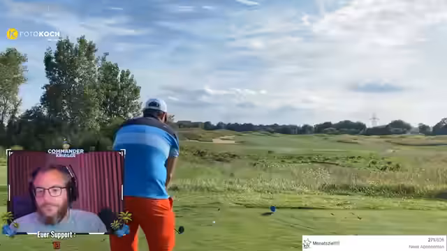 02:56:29Es geht um einen wichtigen Eisenschlag über 151 Meter mit einer 7er Eisen, Fahne hinten, bei dem es um vier Punkte geht. Der Schlag landet fast im Bunker, aber der Ball hüpft entlang der Bunkerkante. Es folgt ein Chip über 52 Meter, der idealerweise nah an den Stock gesetzt werden sollte. Es wird über eine Welle auf dem Grün diskutiert und ob die Fahne drin gelassen werden soll. Der Streamer und sein Mitspieler liegen beide mit drei Schlägen da, was die Situation wieder spannend macht. Am Ende wird ein Punkt gewonnen, was den Streamer zurück ins Spiel bringt. Es wird die T-Box gelobt, die viele Möglichkeiten bietet, das Loch zu spielen. Der Streamer erwähnt eine Regel, nach der es fünf Euro für drei Putts im Partner gibt, was aber nicht angekündigt wurde. Es wird überlegt, diese Regel mal einzuführen. Der Streamer spricht über seinen Schlag und dass er jedes Mal nach jedem Part irgendwie links zieht, was die Leute nervt. Er spürt es aber jedes Mal. Es wird über einen Klar-Griff diskutiert, von dem der Streamer eigentlich schwärmt, der aber auch hilft, bessere Treffpunkte zu erzielen. Die Kappe wird rückwärts getragen und es wird darauf hingewiesen, dass dies am Donnerstag im The Club at Shaddam nicht erlaubt ist.