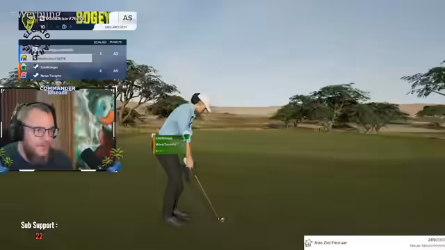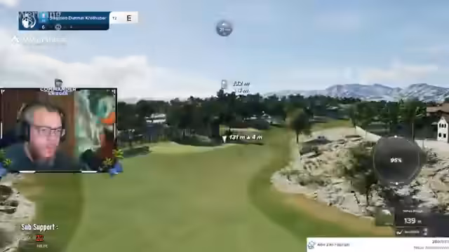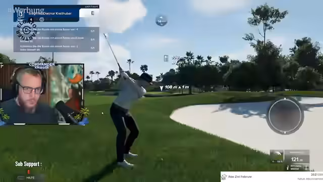 00:02:57Während des Spiels gerät der Streamer in schwierige Situationen, insbesondere an Bunkern, und äußert seine Frustration über mehrfache Fehler, die zu hohen Schlagzahlen wie Double Bogey führen. Gleichzeitig treten technische Probleme auf, so dass der Streamer das Spiel an einer Lochstelle neu starten muss. Er kommentiert, dass sein Mitspieler Siggi noch nicht präsent ist und das Spiel für ihn übel verläuft.