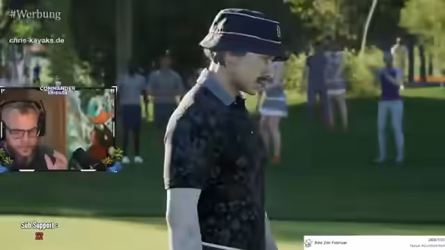 00:18:11Nach einer Unterbrechung, die durch eine empfangene Sprachnachricht verursacht wurde, setzt der Streamer sein Golfspiel fort. Er stellt fest, dass er sich mit den Attributen und Punkten der Spielfigur neu vertraut machen muss und bittet im Chat um Hilfe bei den technischen Einstellungen. Das Ziel ist es, die Performance für die kommenden Runden zu optimieren und sich auf die bevorstehende Runde mit Udo und Stefan vorzubereiten.