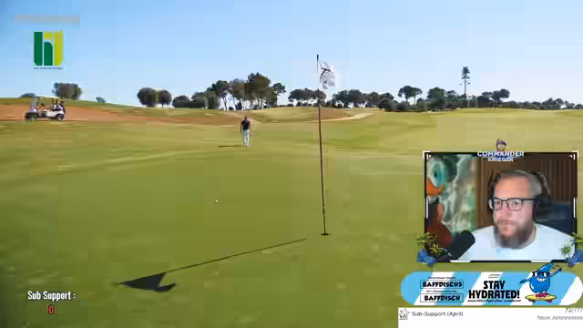 02:12:49Als Belohnung für die Community kündigt der Streamer an, bei jedem Birdie, das er während des Streams spielt, ein Dutzend Golfbälle für einen Lostopf zu verlosen. Dies motiviert ihn zusätzlich und führt zu mehreren Birdies während der Runde. Er kommentiert seine Schläge positiv und bittet die Zuschauer, ihm zu folgen, während er seine Score verbessert.