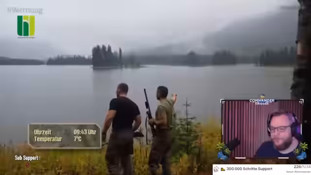 01:37:52Aufgrund starken Regens verzögert sich der Start des Tages beim 'Trust'-Projekt. Milan, eine erfahrene Person, rät davon ab, bei dem Wetter rauszugehen. Stattdessen wird überlegt, ob man angeln gehen soll, da die Teilnehmer Hunger haben. Es wird auch erwähnt, dass die Wildkameras überprüft werden müssen. Beim Zähneputzen werden acht Enten auf dem See entdeckt, die jedoch davonfliegen. Es wird beschlossen, zuerst die Wildkameras zu überprüfen und anschließend angeln zu gehen. Der Streamer vermutet, dass die Teilnehmer sich durch Milans Anwesenheit und ihre Äußerungen über Schwäche und Müdigkeit etwas genervt fühlen könnten, was ihrer Meinung nach eine 'angezogene Handbremse' darstellt.