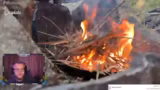 03:49:58Während des Aufenthalts auf den Inseln nähert sich ein schweres Unwetter. Es kommt zu heftigen Blitzen, und aus der Ferne ist ein Buschbrand zu erkennen, der Rauch und Asche in Richtung der Position des Streamers treibt. Er und sein Begleiter Strider bereiten sich auf mögliche Gegenmaßnahmen vor, während der Stream mit der dramatischen Entwicklung der Wettersituation fortfährt.