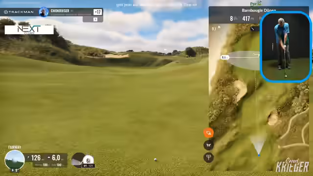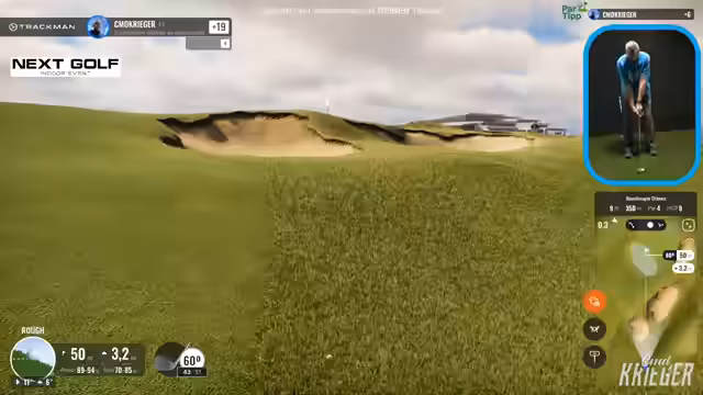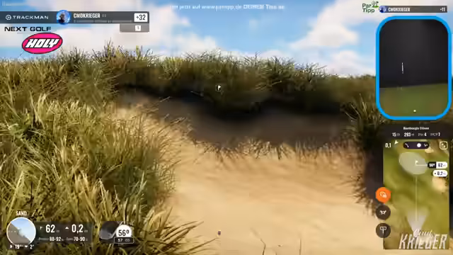 00:55:20Während der Runde werden die Unterschiede zwischen Simulator und echtem Golfplatz deutlich. Die mangelnde 3D-Darstellung macht es schwer, Entfernungen und Geländeneigungen wie Wellen und Bunker korrekt einzuschätzen. Dies führt zu suboptimalen Schlägerentscheidungen und Planungsfehlern. Der Streamer vermischt das Fehlen von Wind im Simulator mit den realen Herausforderungen von Links-Golf, wie harten Böden und rauerem Untergrund.