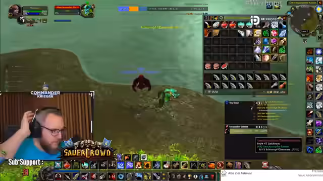 06:09:08Der Streamer gerät in eine schwierige Situation, als er versucht, allein unter Wasser zu den Schiffen zu schwimmen, um dort Lootboxen für eine Quest zu holen. Er berichtet von häufigen Toden und den Gefahren durch die Murlocs, insbesondere einem Mob namens Gylki, der ihm ständig folgt. Die anhaltenden Kämpfe und die Tode frustrieren ihn zutiefst, was er offen im Chat kundtut. Er stellt die Frage, ob es sich lohnt, den Aufwand für die Quest zu betreiben, da der Zeitaufwand und die Frustration ihn zermürben. Er empfindet die Situation als unangenehm und fragt sich, ob es nicht eine effizientere Methode gäbe.