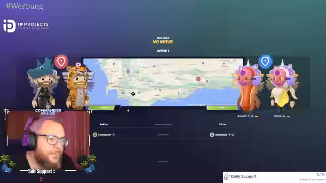 00:22:37Während des Spiels wird die Frustration über die hohen Elo-Ratings der Gegner deutlich. Der Streamer bemerkt, dass seit Beginn des Live-Streams die Leistungen schwächer werden und sie gegen überlegene Konkurrenz antreten müssen. Die Strategie wechselt zwischen mutigen Risikoguesses und vorsichtiger Absicherungen. Es kommt zu internen Abstimmungen, bei denen ein Spieler für ein Land votiert, während der andere ein alternatives Land als Backup in Betracht zieht. Diese Diskussionen sind oft von Unsicherheit und der Angst vor Punktverlust geprägt.