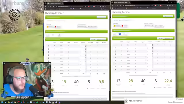 01:54:42Der Streamer berichtet ausführlich über seine Golfrunde am GSV Düsseldorf. Er kommentiert seine Schläge, die Platzbedingungen, insbesondere die durch Nässe beeinflussten Grüns, und zeigt seine neue Ausrüstung wie Wedges von Cleveland. Er diskutiert Handicap-bedingte Spielstärken und die Wahrscheinlichkeit von Putts. Langfristig plant er, eine Serie von Videos zu machen, in der er verschiedene Plätze des Greenfee-Verbunds Münsterland spielt und mit der Community teilt, welche Plätze sie ihm empfehlen sollen. Er blickt auf die bevorstehende Golfsaison und auf eine Reise nach Belek in der Türkei für ein Traininglager zurück.