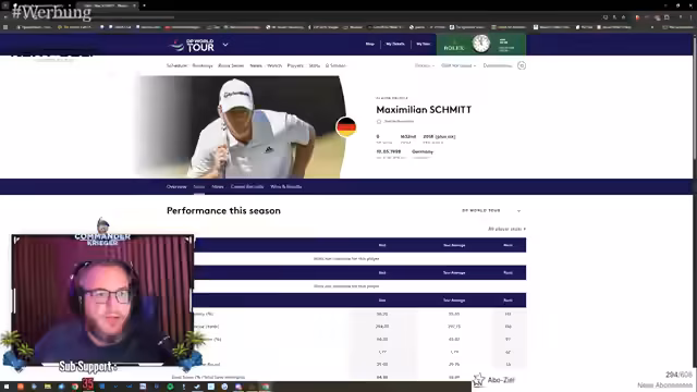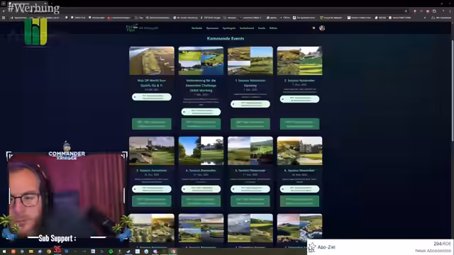 00:00:54Der Streamer diskutiert mit einem Zuschauer namens Max über dessen Golf-Qualifikationsturnier in Spanien, die Rolex Grand Final in Alcanada, Mallorca. Es werden Details zum Turnierverlauf, wie Startzeiten und Gruppenzusammensetzungen, besprochen. Max soll um 10:17 Uhr starten, und es gibt insgesamt 144 Spieler, aufgeteilt in 24 Gruppen mit jeweils drei Spielern. Es wird thematisiert, ob Max lieber mit besseren oder schlechteren Spielern zusammen spielt und wie viel Preisgeld andere Spieler bereits gewonnen haben. Der Streamer bietet an, für Max bei einem Tippspiel namens 'Paartipp' zu werben, bei dem Zuschauer tippen können, wie viele Schläge Max pro Loch benötigt. Als Gewinn lockt ein signierter Gegenstand von Max für den besten Tipper. Der Streamer zeigt auch ein Video von einem seiner eigenen Birdies, um seine Golfkünste zu demonstrieren und die Begeisterung für den Sport zu teilen. Es wird über die Schwierigkeit des Spiels und die Bedeutung von Strafschlägen diskutiert.