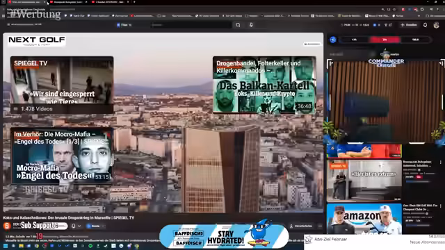02:08:53Der Streamer wechselt das Thema und zeigt einen Dokumentarfilm über die Drogenkriminalität in Marseille, Frankreich. Er konzentriert sich auf die Gewalt und das organisierte Verbrechen, das durch Drogenbanden ausgeübt wird. Die Reportage zeigt, wie Jugendliche in den illegalen Drogenhandel hineingezogen werden, um an schnelles Geld zu gelangen. Es wird die brutale Machtausübung innerhalb der Banden dargestellt, einschließlich Folter und Morden. Parallel wird auch das Problem des Drogenschmuggels in Gefängnissen mittels Drohnen thematisiert.