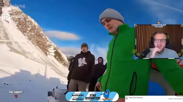 00:07:41Während Gunnar verletzungsbedingt nicht springen kann, wird spontan ein Skisprung auf einen Schneehaufen unternommen. Der Streamer äußert Bedenken bezüglich der Sicherheit, da der Hang steil ist und der Schnee nicht ideal. Gunnar ignoriert die Warnungen und absolviert den Sprung erfolgreich, was bei den Zuschauern für Aufregung und Erleichterung sorgt. Die Entscheidung wird als riskant, aber letztendlich gelungen bewertet, was zu einer lebhaften Diskussion über Grenzen und Vorbilderlichkeit führt.
