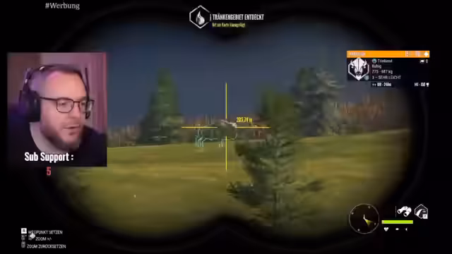 01:07:05Nach der Annahme einer Herausforderung, zwei Weißwedelhirsche zu erlegen, begibt sich der Streamer auf die Jagd. Beim Anschuss der Tiere werden sie aufgeschreckt, weshalb Geduld und ruhiges Verhalten gefragt sind. Um die Suche nach dem angeschossenen Tier zu vereinfachen, wird der Bluthund Helga aus dem Zwinger geholt. Diese Funktion ist besonders für Anfänger eine große Hilfe, da die Tierspuren zuverlässig aufgespürt und verfolgt werden können, um das Tier sicher zu finden und zu erlegen.