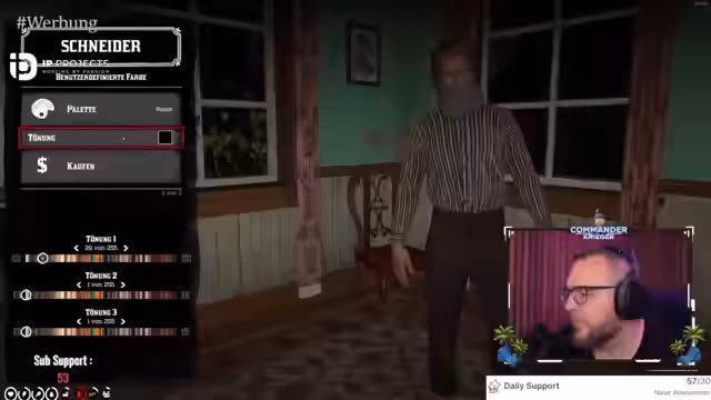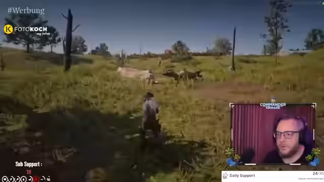00:01:39Der Streamer stellt den Plan für den heutigen Abend vor. Nach dem Test des neuen Rifle Packs in The Hunter: Call of the Wild steht das Training für ein Geogässer-Turnier auf dem Programm, anschließend geht es in Red Dead Redemption 2 auf dem Fat Lady Server. Der Fokus liegt auf dem neuen Waffenpack, das als Werbung in den Stream integriert ist. Für Zuschauer wird ein Gewinnspiel für das Waffenpack und das Spiel selbst angekündigt, unter Nutzung des Hashtags #CalloftheWildistLiebe.