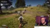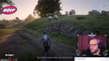 12:32:39Nach dem Fertigstellen des Outfits interagiert der Streamer mit einem NPC, der als Deputy fungiert. Er stellt seinen Charakter Clyde Wilson vor und klärt die Rechte und Pflichten auf seinem Grundstück. Er fordert Respekt für sein Land an und warnt vor Konflikten. Anschließend wird die Spielwelt erkundet und geplant, wie man mit den angeschafften Tieren handelt. Dabei wird deutlich, dass die Spielfigur momentan wenig Geld hat und strategisch vorgehen muss, um ihre Ziele zu erreichen.