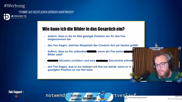 01:50:04Influencerinnen werden für ihre Rolle im Fanblast-Skandal scharf kritisiert. Sie sollen durch vage Versprechungen (z.B. "Wenn du investierst, treffen wir uns") Fans zu Zahlungen motivieren, obwohl Treffen nie stattfinden. Der Sprecher verweist auf konkrete Chat-Beispiele, wo Influencerinnen dies suggerieren. Er fordert öffentliche Stellungnahmen von Betroffenen wie Alexis und Gwendoline. Gleichzeitig warnt er vor Erpressungsrisiken: Fans, die intime Bilder senden, könnten von Whistleblowern erpresst werden. Er betont, dass trotz der Täuschung Beleidigungen oder Drohungen gegen die Beteiligten nicht akzeptabel sind.