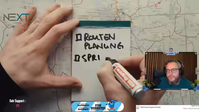 02:40:00Nach dem ersten Flug machen der Streamer und Dave einen Tankstop und organisieren die nächste Route. Dabei wird Revolut als ideale Online-Bank für internationale Reisen beworben, mit Vorteilen wie keinem Kontoführungsgebühren, Multi-Währungskonten und einem Willkommensbonus von 20 Euro plus Chance auf 1000 Euro. Der Streamer erklärt, dass er die Hälfte seiner Provision (20-200 Euro) mit anmeldenden Zuschauern teilt, wenn diese sich über seinen Link registrieren, 15 Euro aufladen und drei Transaktionen durchführen.