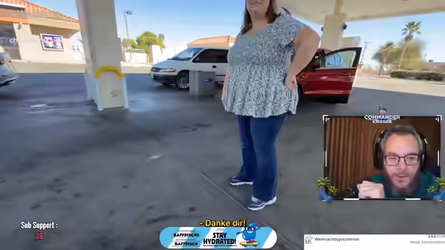 03:26:40Gestrandet in der abgelegenen Mojave-Wüste suchen der Streamer und Dave nach Hilfe. An einer Tankstelle bittet der Streamer einen Lastwagenfahrer um Unterstützung mit einem Pickup. Parallel wird eine Lösung mit einem lokalen Helfer organisiert, der Dave aus der Wüste holt. Die nächtliche Rettungsmission wird koordiniert, wobei Lebensmittel und Schlafsäcke für den Notfall vorbereitet werden.