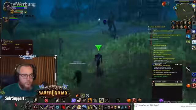 02:47:58Nach der Dungeon-Erfahrung geht es für den Streamer zurück ins Questen im Dämmerwald, Level 24. Er betont seine Vorsicht, da es sein erstes WoW ist und er noch nicht gestorben ist. Sein Ziel ist es, sicher und gemütlich zu leveln, anstatt sich unter Druck zu setzen. Er trifft auf einen anderen Spieler, 'Hanneslav', und plant, zusammen die Quests zu absolvieren, auch wenn die Wege etwas umständlich sind. Die gemeinsame Jagd auf Wölfe und Spinnen beginnt.