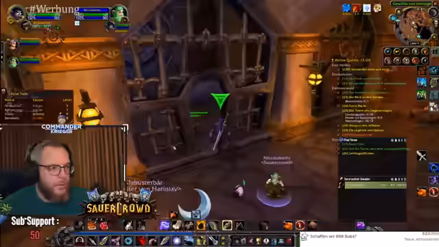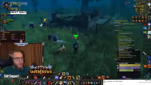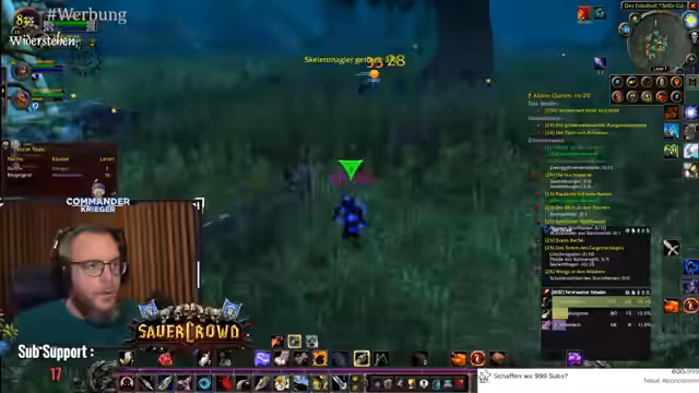 03:51:13Gemeinsam mit seinem Begleiter questet der Streamer in Westfall, konfrontiert mit der ständigen Gefahr durch hochlevelige Gegner und Elites. Das 'High-Level-Alert' Addon wird als entscheidend für das Überleben gelobt, da es vor gefährlichen Monstern warnt. Trotzdem geraten sie in gefährliche Situationen, müssen aber mit taktischem Vorgehen, wie dem vorsichtigen Herausziehen einzelner Gegner, immer wieder ums Überleben kämpfen und demonstrieren so gelungenes Risikomanagement.