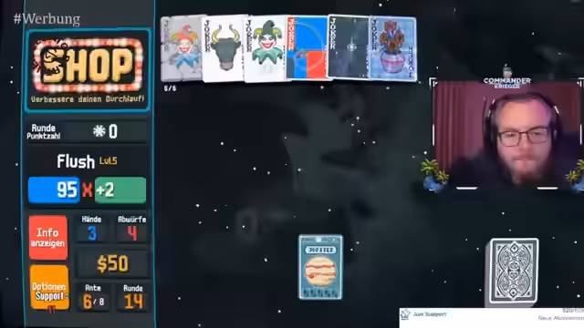 02:14:42Der Streamer spielt ein Spiel, bei dem er mehrere Joker-Karten nutzt und über deren Wert und Strategien spricht. Er zeigt Begeisterung für das Spiel und nutzt die Karten strategisch, um höhere Werte zu erzielen. Er erwähnt, dass jede verworfene Karte am Ende der Runde hinzugefügt wird, was das Spiel beeinflusst. Er scheint das Spiel als 'lecker Schmecker' zu bezeichnen und zeigt sich zufrieden mit den erzielten Punkten.