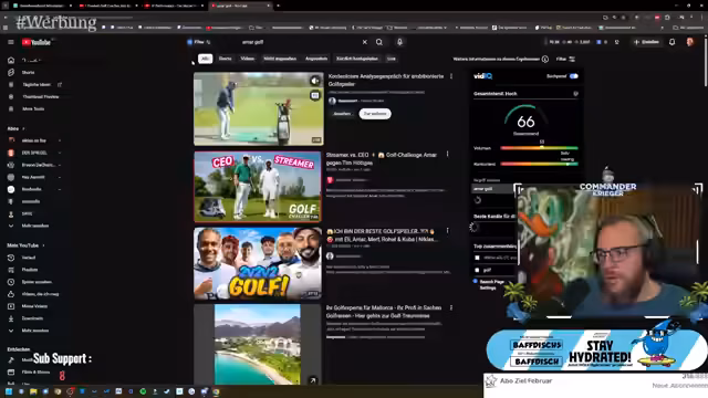 02:55:27Die Vorbereitung für ein bevorstehendes Golfturnier wird besprochen. Der Streamer erwähnt, dass er einen speziellen Golf-Trainer aufsuchen könnte, um gezielt an seinem Pitching zu arbeiten und Schwachstellen zu reduzieren. Es werden verschiedene Handicaps und Spielstrecken auf dem Platz durchgegangen und diskutiert. Der Streamer analysiert seine früheren Leistungen und stellt fest, dass er an einigen Löchern noch Vorgaben hat, während er an anderen bereits par spielen kann, was zeigt, dass sein Spiel eine gewisse Stärke und Schwächen aufweist.