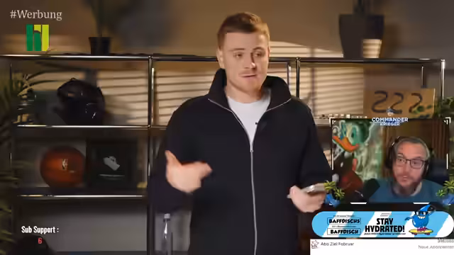 01:35:02Während des Spiels reflektiert der Streamer über die Videoproduktion. Er findet es positiv, wenn ein Kameramann die Kamera seitlich wechselt, um dem Zuschauer mehr Dynamik und abwechslungsreiche Perspektiven zu bieten, anstatt die Grafik einfach zu spiegeln. Er lobt Konstantin Madert als Produzent, der mit seiner Serie 'Rough and Dirty' ein Minimum an Inhalten bietet: Theorie, Kameraaufstellung und das Filmen der Situation, ohne aufwendige Drohnenaufnahmen.